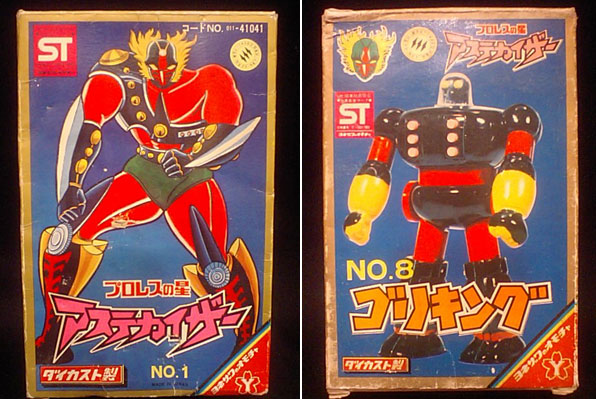 この道の方ならときめかずにいられない最高の組み合わせである作品、プロレスの星アステカイザー。 当時の新日本プロレスの協力もありアントニオ猪木や佐山聡、レフェリーのミスター高橋など実名の人物が作品にも多数登場しました。 タイガーマスクやサンダーライガーが活躍する現在のプロレスにも是非、アステカイザーを名乗るレスラーが登場してほしいところでありますが・・・・。 ヨネザワ アステカイザー ヨネザワ ゴリキング 状態:ともに箱いたみ、本体並品。 コンプレックス1階・ダイナミックショーケースで「カイザー・イン!」