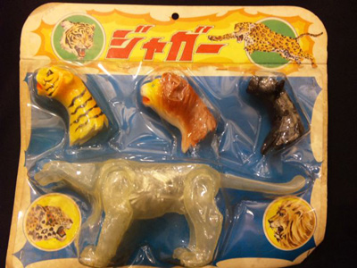 ソフビ製の本体にソフビ製のライオン、虎、黒豹??の頭部が差し替え可能。