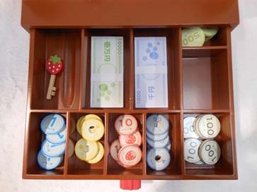 お札とコインもついていて数遊び、お店屋さんごっこが楽しめます。